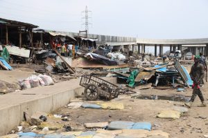 Commissioner for the Environment and Water Resources, Mr. Tokunbo Wahab, who visited the market on Sunday for assessment, was accompanied by the Special Adviser on Environment, Mr. Olakunle Rotimi-Akodu; Permanent Secretary, Office of Environmental Services, Mr. Gaji Omobolaji; Permanent Secretary, Office of Drainage Services, Engr. Lekan Shodeinde, the Managing Director/CEO of the Lagos Waste Management Authority (LAWMA), Dr. Muyiwa Gbadegesin, and Chairman of Lagos State Taskforce, CSP Shola Jejeloye.