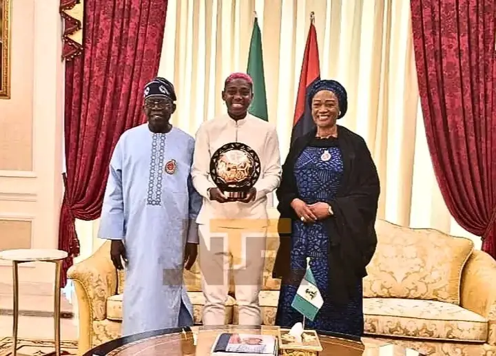 President Bola Tinubu and his wife, Senator Oluremi Tinubu, received a special visit from Nigeria’s leading female footballer, Asisat Oshoala, at their home in Lagos.