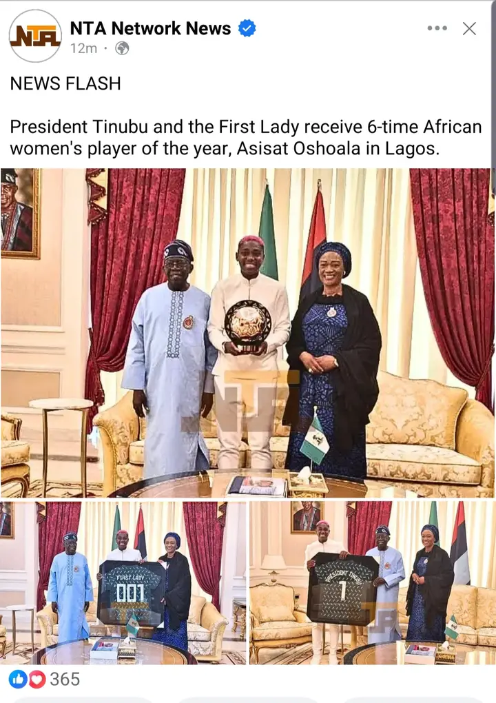 Moreover, President Bola Tinubu and his wife also praised Asisat Oshoala for her achievements and for inspiring young girls across the nation.